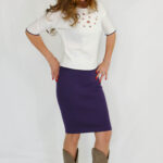 Detaliile bluzei, vizibile pe ambele părți, vor scoate din anonimat outfit-ul tău. Fusta, a cărei lungimi nu lasă la vedere genunchii, poate fi integrată atât în ținutele de birou, cât și în cele de cocktail party.
